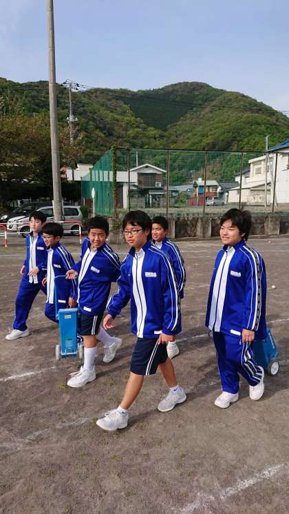 23日に1年生が部活動に正式入部しました。ソフトテニス部の1年生は先輩達と一緒にライン引きを行うなど、活動をスタートさせました。3年生も喜んでいます。