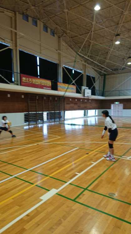 23日に1年生が部活動に正式入部しました。バレーボール部では1年生も先輩達と同じメニューを行いました。