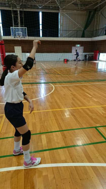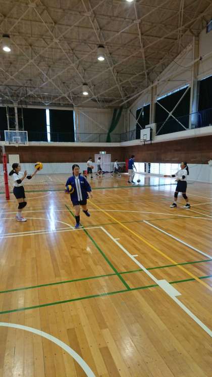 23日に1年生が部活動に正式入部しました。バレーボール部では1年生も先輩達と同じメニューを行いました。