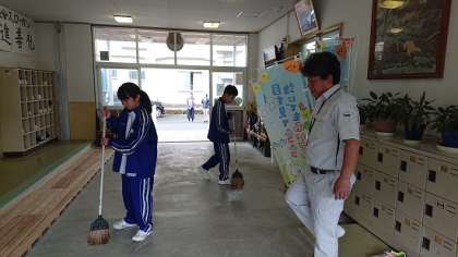 委員会活動の様子です。学習環境委員が常時活動として玄関掃除を丁寧に行っています。いつもありがとうございます。