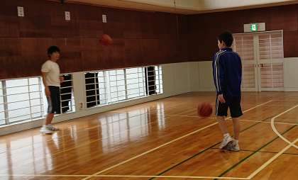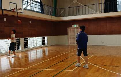 バスケットボール部の様子です。小数精鋭ながらもきっちりと練習を行っていました。