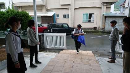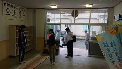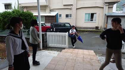 今朝の登校の様子です。生活健康委員が朝のあいさつ運動を行っていました。