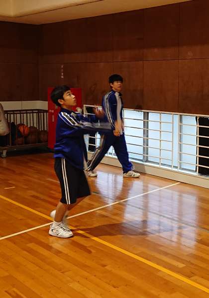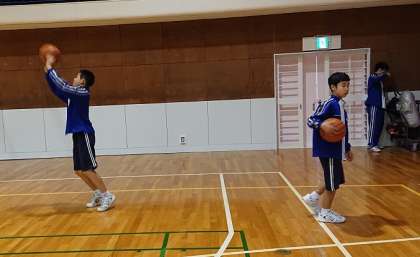 バスケットボール部の朝練習の様子です。シュート練習、パス練習などを行っています。