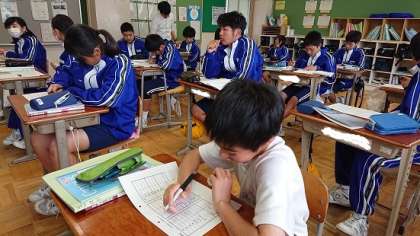 2年生は理科で化学変化を化学反応式で表す活動を行っていました。