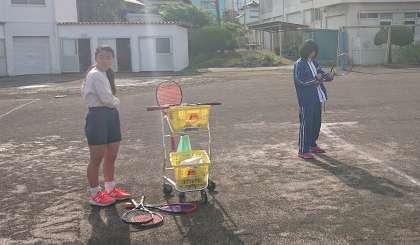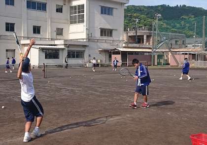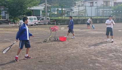 ソフトテニス部の様子です。朝から気合いの入った練習を行っています。