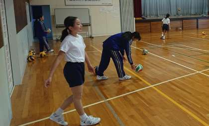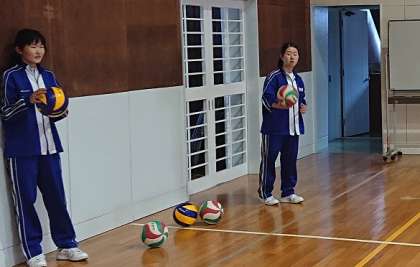 バレーボール部の朝練習の様子です。それぞれがレベルアップを図った練習に取り組んでいました。