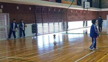 バレーボール部の朝練習の様子です。それぞれがレベルアップを図った練習に取り組んでいました。