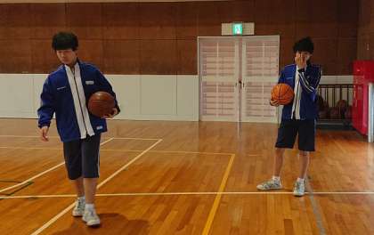 バスケットボール部の朝練習の様子です。毎日の目標を決め練習に励んでいます。