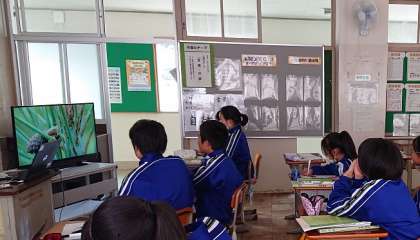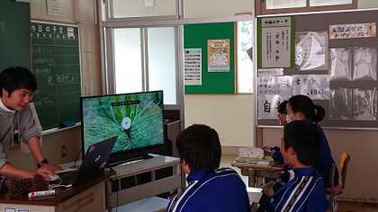 1年生は理科で「花粉の運ばれ方」について学習を進めています。松かさはなぜ果実と呼ばないかを映像で確認しました。
