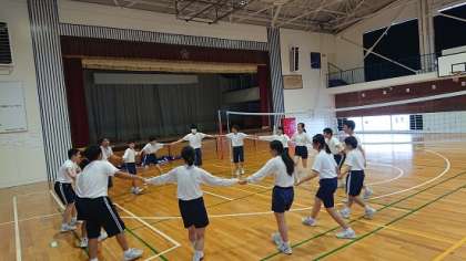 2年生は体育でフォークダンスを行っていました。校外体験学習では、みんなでマイムマイムを踊る予定です。