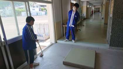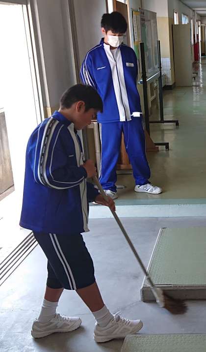 学習環境委員による玄関清掃です。朝清掃のお陰で、毎朝、気持ちよく一日がスタートします。ありがとうございます。