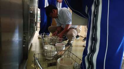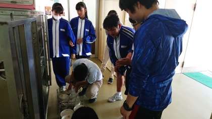 生活健康委員と共に渡部先生も残量をチェックしています。