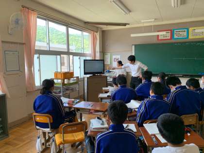 2年生は国語で作文指導を行っています。ICT機器を活用し、生徒が作文の一端を紹介しています。