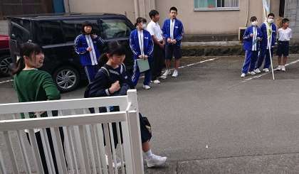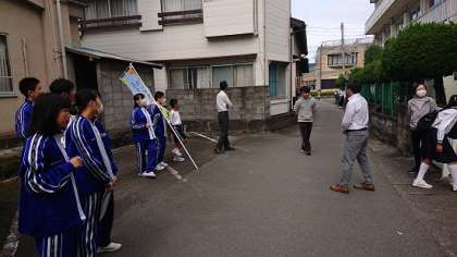 生徒会役員と生活健康委員が朝のあいさつ運動を行っていました。朝からみんなで声をかけあっていました。