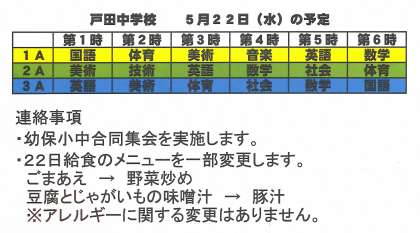 5/22(水)の予定です。明日の準備をよろしくお願いします。