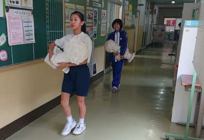 昨日の様子です。小中共同生活に向け、美術室の片付けを行っています。ボランティアの生徒が胸像を移動してくれました。
