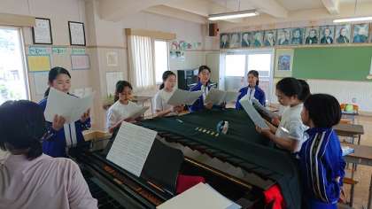 1年生は音楽で合唱曲「ふるさと」をパートごと練習を行いました。