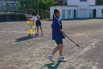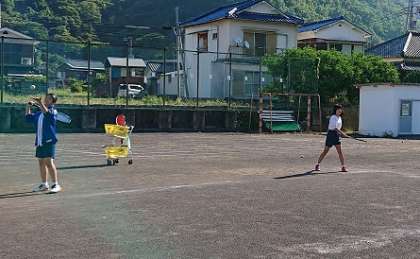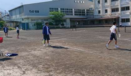 ソフトテニス部の朝運動の様子です。朝からボールをたくさん打ち込んでいます。1年生は心電図検査のため、朝練習を行いませんでした。