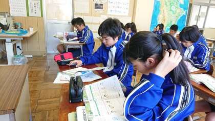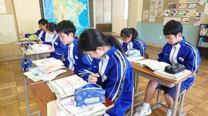 1年生は英語でbe動詞の疑問文について学習を進めていました。ワークノートの英文を読んでいました。