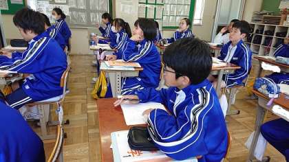 1年生は数学で「乗法・除法」の学習を行っていました。今日は、正の数、負の数を用いたかけ算について考えました。