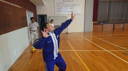 バレーボール部の朝練習の様子です。それぞれがレベルアップを図った練習に取り組んでいました。