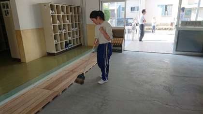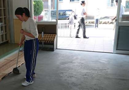 学習環境委員による玄関清掃です。朝清掃のお陰で、毎朝、気持ちよく一日がスタートします。ありがとうございます。