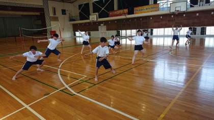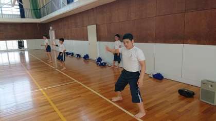 2年生は、昼休みに校外体験学習に向けてソーラン節の練習を行っていました。校外体験学習では、ソーラン節を1年生に教えます。