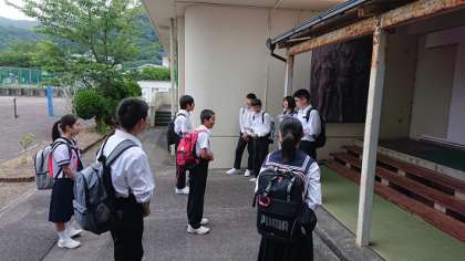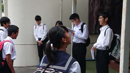 今朝、生徒は5時に集合し、最初に結団式を行いました。