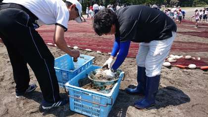 御浜交流では、戸田っ子のパワーで海岸がとてもきれいになりました。