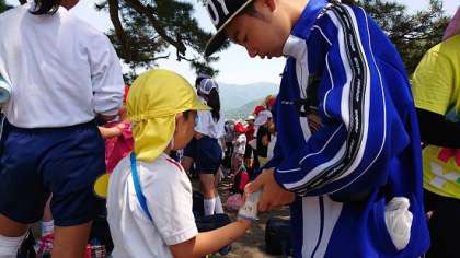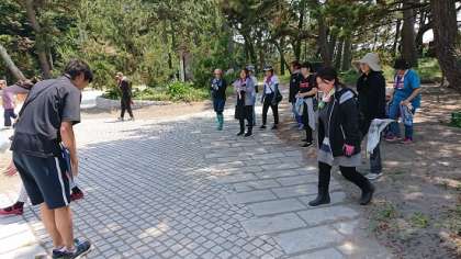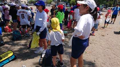清掃活動がスタートしました。交流担当の富永教諭が保護者にお願いのあいさつに行きました。