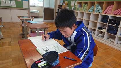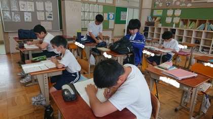 2年生は朝勉強会を実施し、学力アップを図っています。