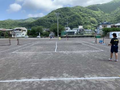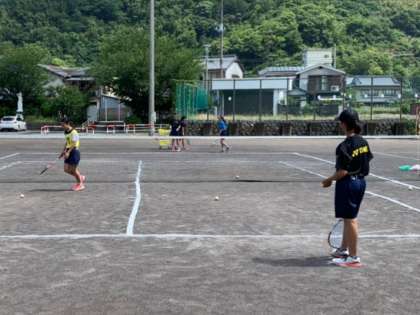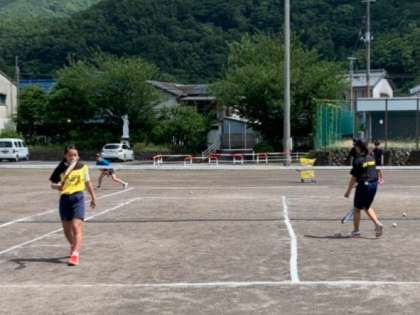 女子ソフトテニス部は本校で練習を行っています。中体連大会に向け、全員で心を一つにして練習に励んでいます。