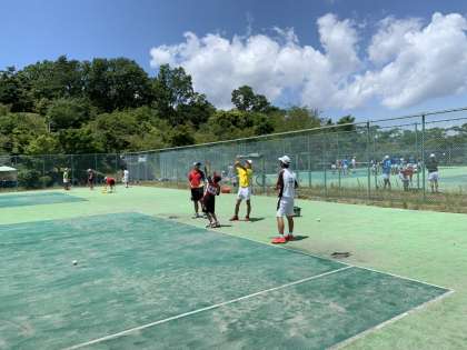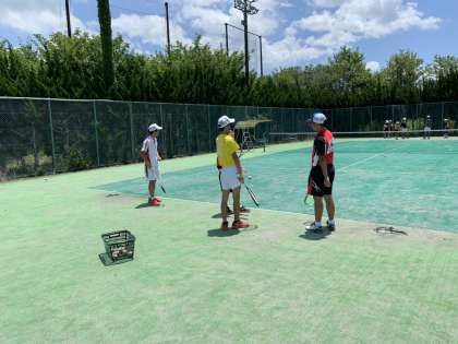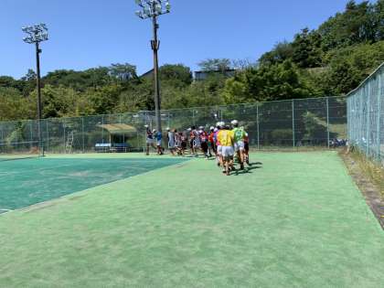 男子ソフトテニス部は、中伊豆ワイナリーテニスコートにおいて合同練習会に参加しています。