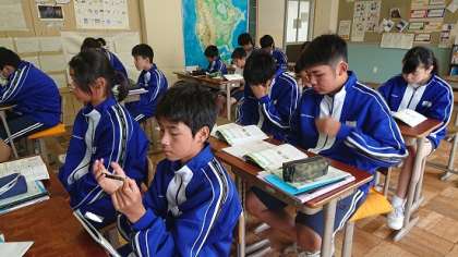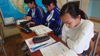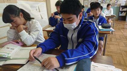 2年生は英語で「I think 〜.」を使って、自分が思っていることを友達に紹介する文章を考えていました。