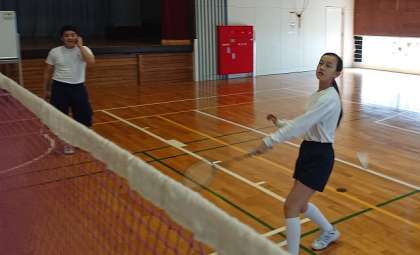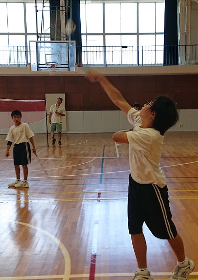 2年生は体育でバドミントンを行っています。ラリーがどうしたら続くのかを考えながらプレイしました。