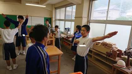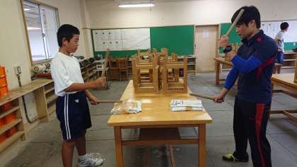 3年生を励ます会に向けて、応援団員による練習が始まってから3日目となりました。今日は2年生や教員が1年生に指導していました。応援団の皆さん、頑張ってください。