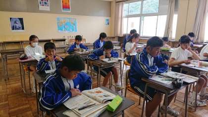 2年生は美術で版画について学習しています。ワークシートを使って版画の手法などを確認しました。