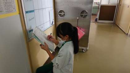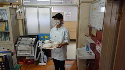 月曜日から始まった「高校生職場体験実習」も3日目となりました。田方農業高校の2年生が給食室で調理場実習を行っています。