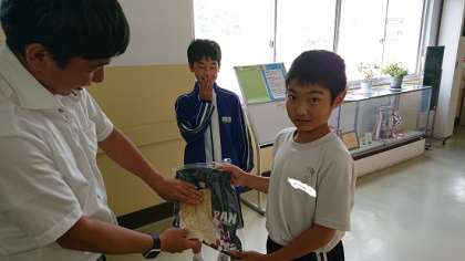 昼休みの様子です。希望購入した中体連記念Tシャツをソフトテニス部顧問から受け取っていました。これから記念Tシャツを着て、プレイに磨きをかけていくことでしょう。また、勉強もさらに力を入れていきましょう。