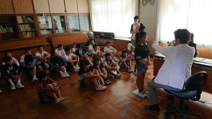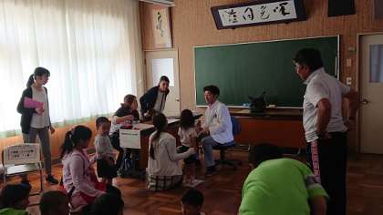 本日、幼保小中合同で眼科検診を行いました。へだっこセンター、小学校、中学校という順番で小学校研修室にて実施しました。