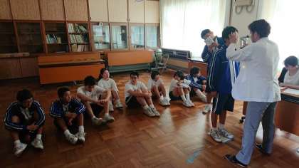 本日、幼保小中合同で眼科検診を行いました。へだっこセンター、小学校、中学校という順番で小学校研修室にて実施しました。