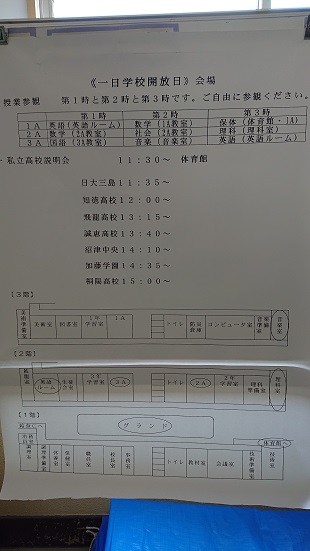 本日は、一日学校開放日並びに私立高校説明会です。保護者・地域の皆様、お時間のある方はお出かけください。