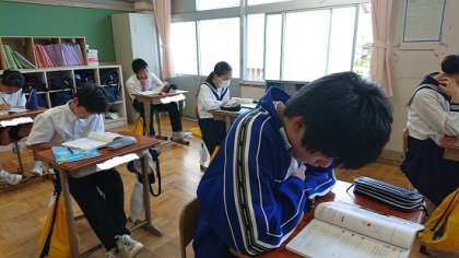 2年生は数学の時間において、来週の期末テストに向け、既習事項の復習をしていました。
