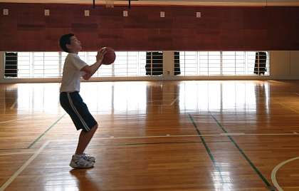 バスケットボール部の様子です。朝から集中して練習を行っています。
