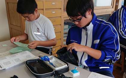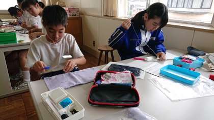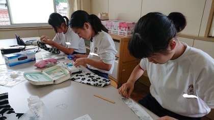 2年生は家庭科で「エコティッシュカバー」作りを行っています。作品の完成を目指して、それぞれが裁縫活動を進めました。