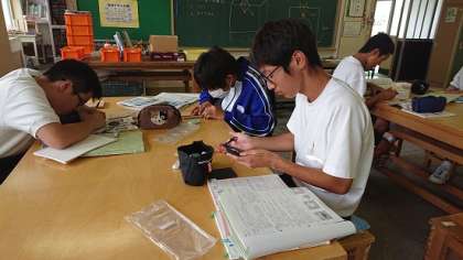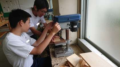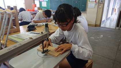 3年生は技術で「材料と加工に関する技術(金属)」について学習しています。今日は、糸鋸やカッターナイフなどを使いながら固定板の加工を行いました。