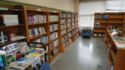 学習環境委員がパソコン室に移動した新しい学校図書館で本の貸出業務を始めました。