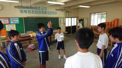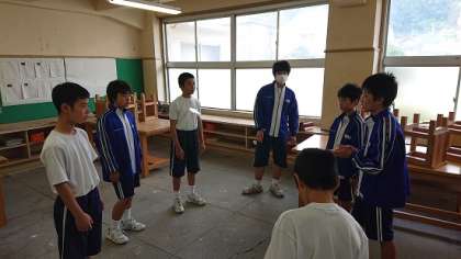 3年生を励ます会に向けて、応援団員による練習を行っています。2年生の1年生に対しての指導が上手で、1年生がどんどん上達しています。応援団の皆さん、頑張ってください。
