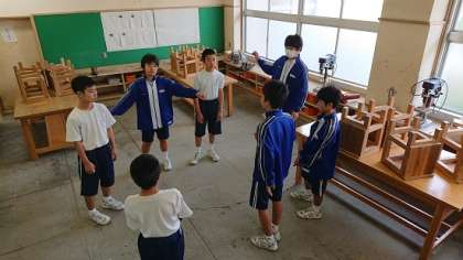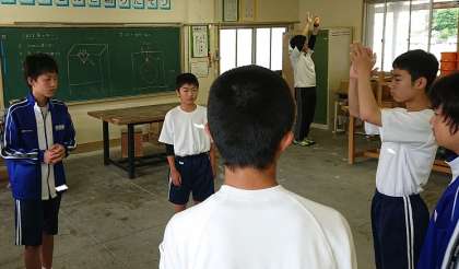 3年生を励ます会に向けて、応援団員による練習を行っています。2年生の1年生に対しての指導が上手で、1年生がどんどん上達しています。応援団の皆さん、頑張ってください。