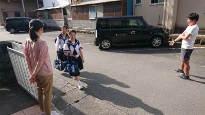 朝のあいさつ運動を行っていました。教員も一緒に立ち、一人ひとりに声をかけています。